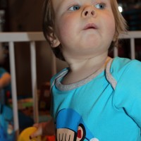 Preston was in his play area, having a good ol time with the toys, but he could still hear the movie and thought he was going to miss something!!