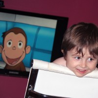 This photo made me laugh. Addi was at the computer watching Curious George, when Daddy snapped this. Two Monkeys!!!