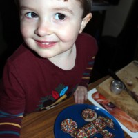 You love your chocy fairy bread and while at Gran’s house you have been requesting all sorts of shapes. I made you a train and you loved it!!