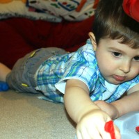 You were having fun playing with this little pop up toy. You love pushing the little boxes closed, but for the life of you couldn’t work out how to get them open. I just love the concentration and puzzled look on your face.