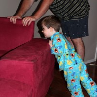 Before we go on holiday tomorrow, you were helping Daddy to move the last of the furniture ready for our floors to be sanded. I love the fact that you think that you can actually move it on your own.