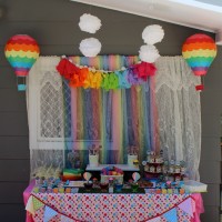 Going Up, Up and Away in our hot air balloon after our rainbow party.