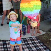 The pinata for the party is of course a hot air balloon in rainbow colours! The kids enjoyed having a hit but in the end it took Mummy to break it open.