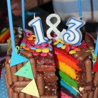 The moment I was waiting for with anticipation, the cutting of the rainbow birthday cake and hoping that the inside would be as impressive as I had imagined. It was even better!