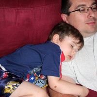 Addi couldn’t even make it through dinner tonight, he has had a big day and crashed, fast asleep on Daddy’s shoulder.