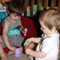 Something that both the boys seem to love is playing with their kitchen and play food. Today we were all having icecreams and cups of tea.