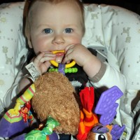 You were having a good time today playing with your toys on the tray of the high chair. You were playing that fun ol’ game, throw the toy and watch Mummy pick it up!! This is also one of the first photos of your brand new two bottom teeth!