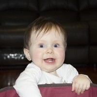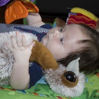 Jasper is really starting to enjoy playing and exploring his toys. Which also means he loves putting things in his mouth. Today his emu was getting “kisses.”