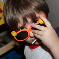 Addi looking very cool with his toy sunnies and lollipop in his mouth.
