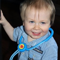 I just love these photos of Preston playing with the toy doctor kit, he really looks the part.