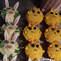 Kmart were selling these wonderful cupcake decorating kits for Easter and I thought it would be fun to do these with Addi. Addison loved doing the chicken cupcakes, the bunnies were a little bit tricky for him though, but he gave it a try.