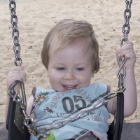Preston having a swing at the park playground.
