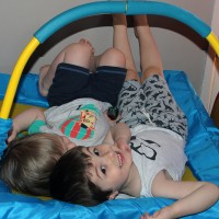 These two may have their little squabbles over toys but at the end of the day they would be lost without each other. Here they are having cuddles on the trampoline. I wonder how number 3 brother is going to fit in.