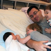 Jasper is getting to know his family, while spending some time with them on the bed. Both of his big brothers are very fascinated with him.
